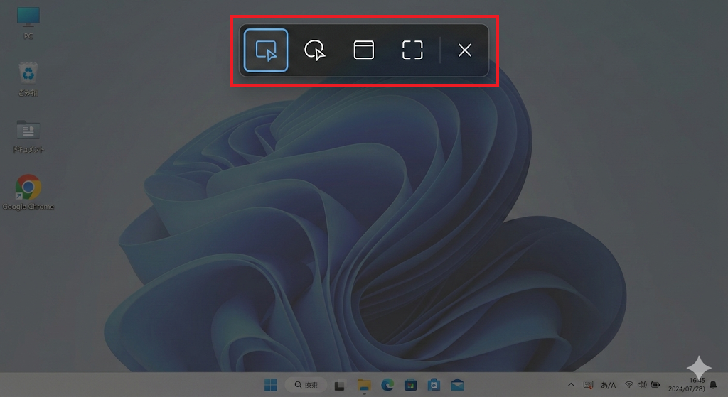 使い方は本当に簡単です。キーボードの「Windowsキー」と「Shiftキー」と「Sキー」の3つを同時に押すだけ。